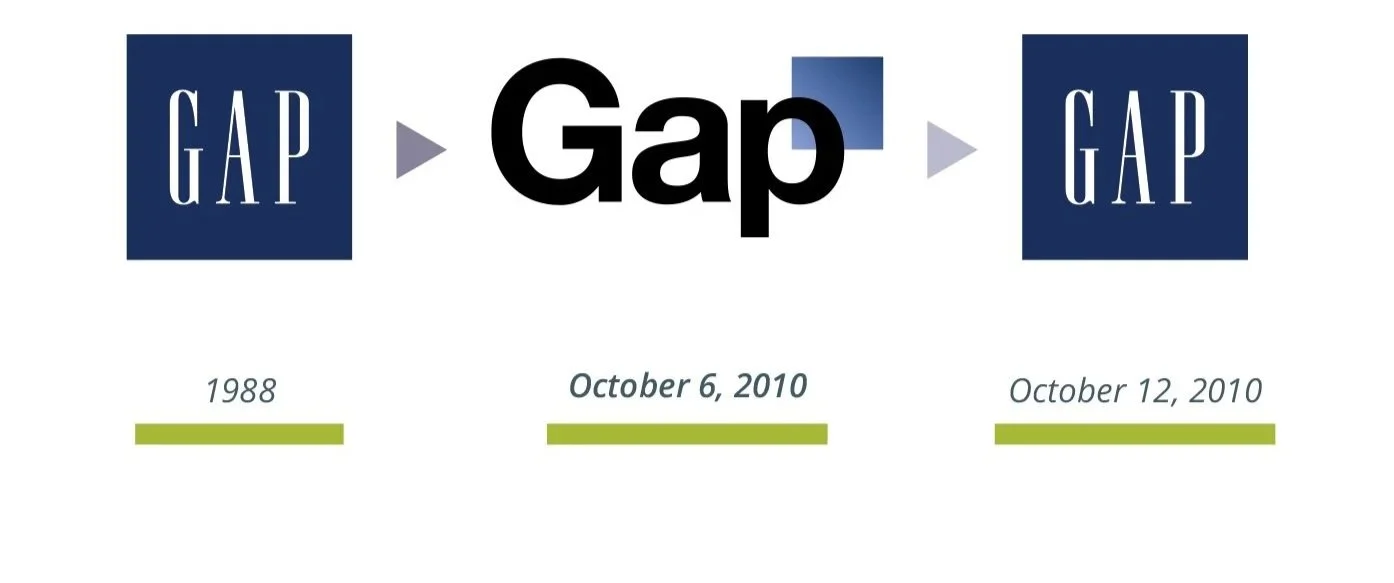 In 2010 Gap’s sales were falling quickly. The brand wasn’t resonating with younger audiences. A rebrand seemed the ticket to modernizing the brand and recapturing the spark it had in its 1990s heyday.