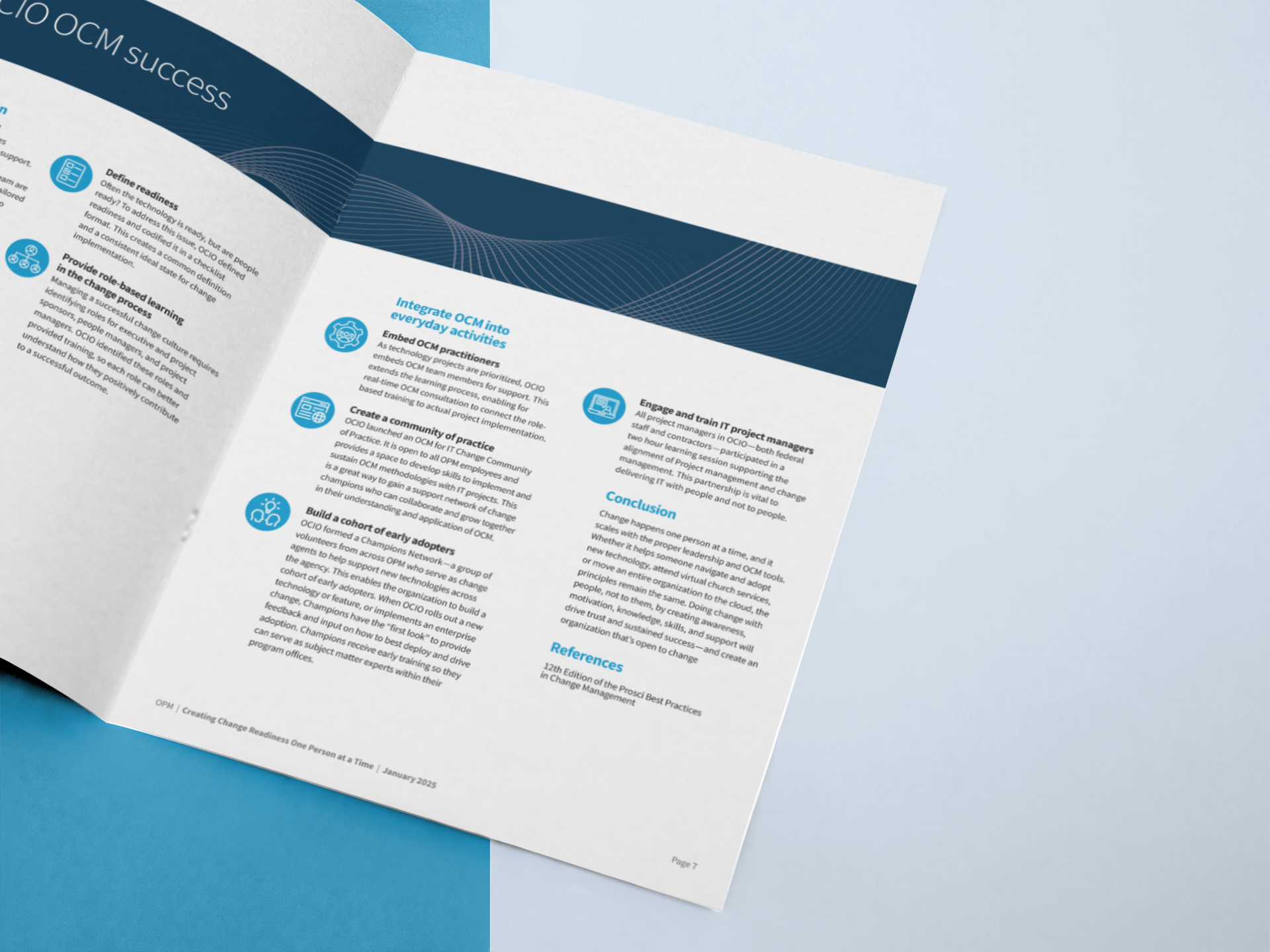 OCM Playbook: A turnkey guidebook that includes communication templates, training guides, planning activities, and more to support OPM leaders and employees through the IT change process